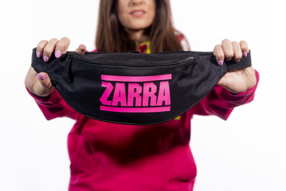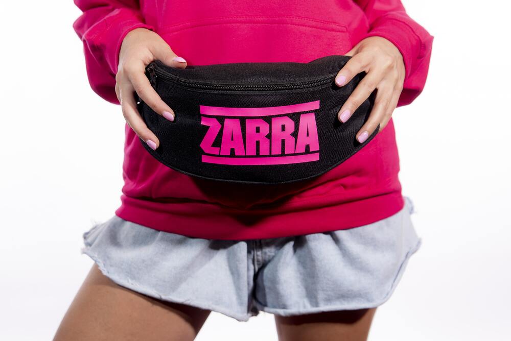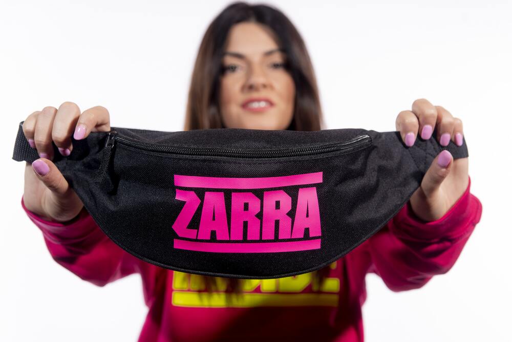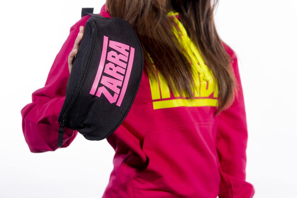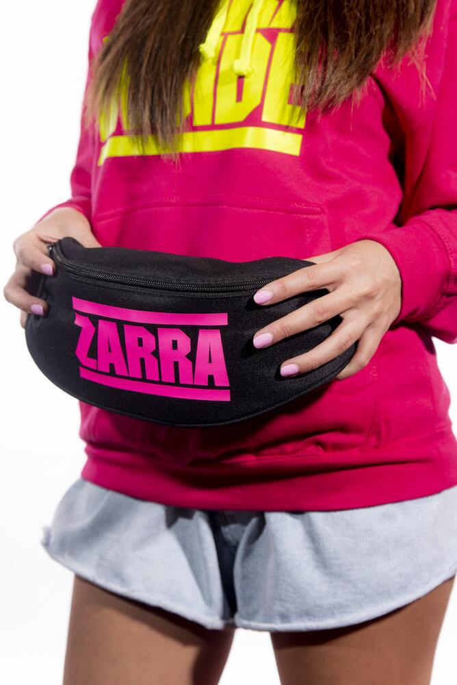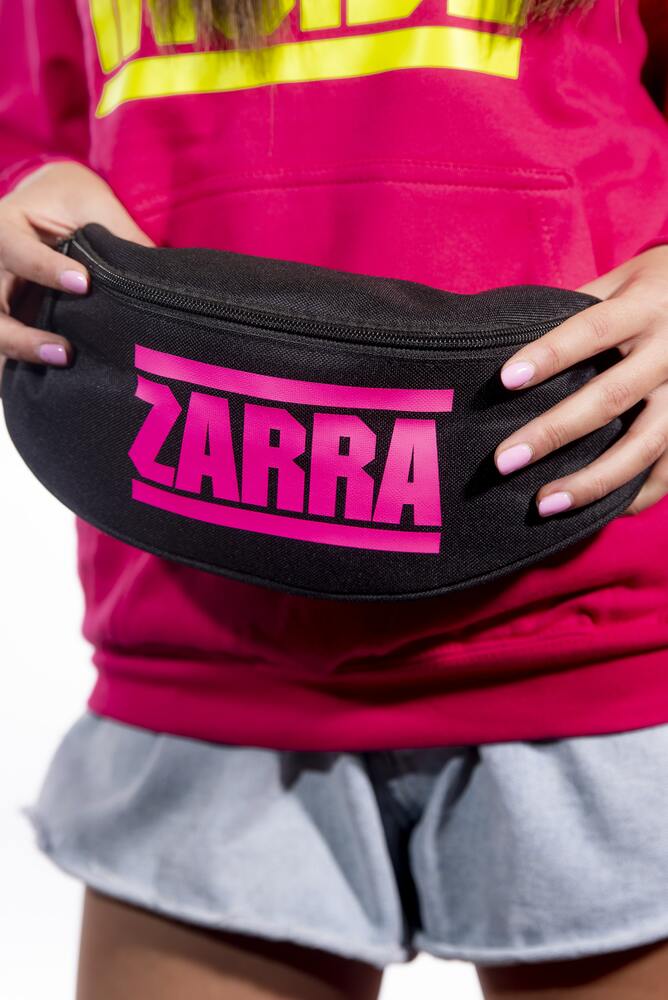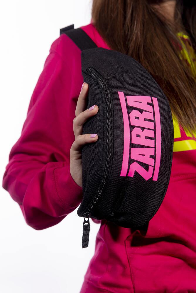 Marsupio ZARRA INSIDE nero con stampa fucsia fluo.