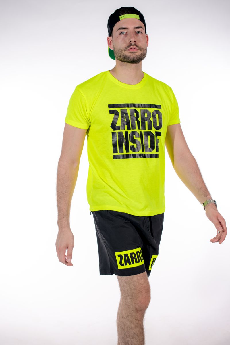 T-shirt gialla fluo con stampa nera per essere i capi della cumpa.